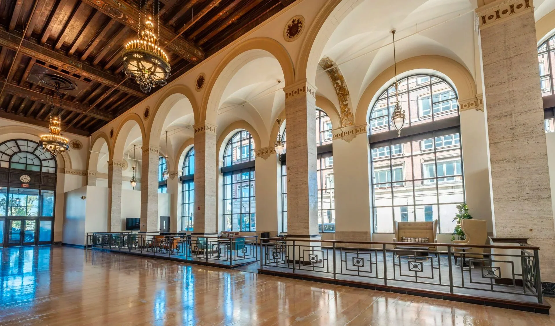 This 100-year-old bank was converted into a 10-story, 100-unit apartment complex featuring modern units, amenity center, dog wash station, banquet hall, and community spaces while preserving the building’s historic charm.